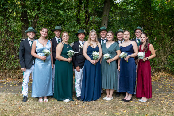Um 12:50 mit dem 75. Schuss krönt Niklas Günnewig sich zum König der Jungschützenkompanie. An seiner Seite steht als Königin Amelie Jung. Die beiden regieren nun die